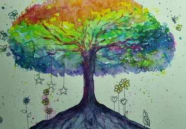 In 2018, after a number of significant life events, including the deaths of my parents, I found myself in need of psychological support. I discovered, as I accessed this support, how art journalling greatly improved the therapeutic experience for me...So I became an art therapist...to share the benefits of creative expression for healing, personal growth and general well-being...with anyone who would like to allow their Inner Wisdom to speak with them through their art.